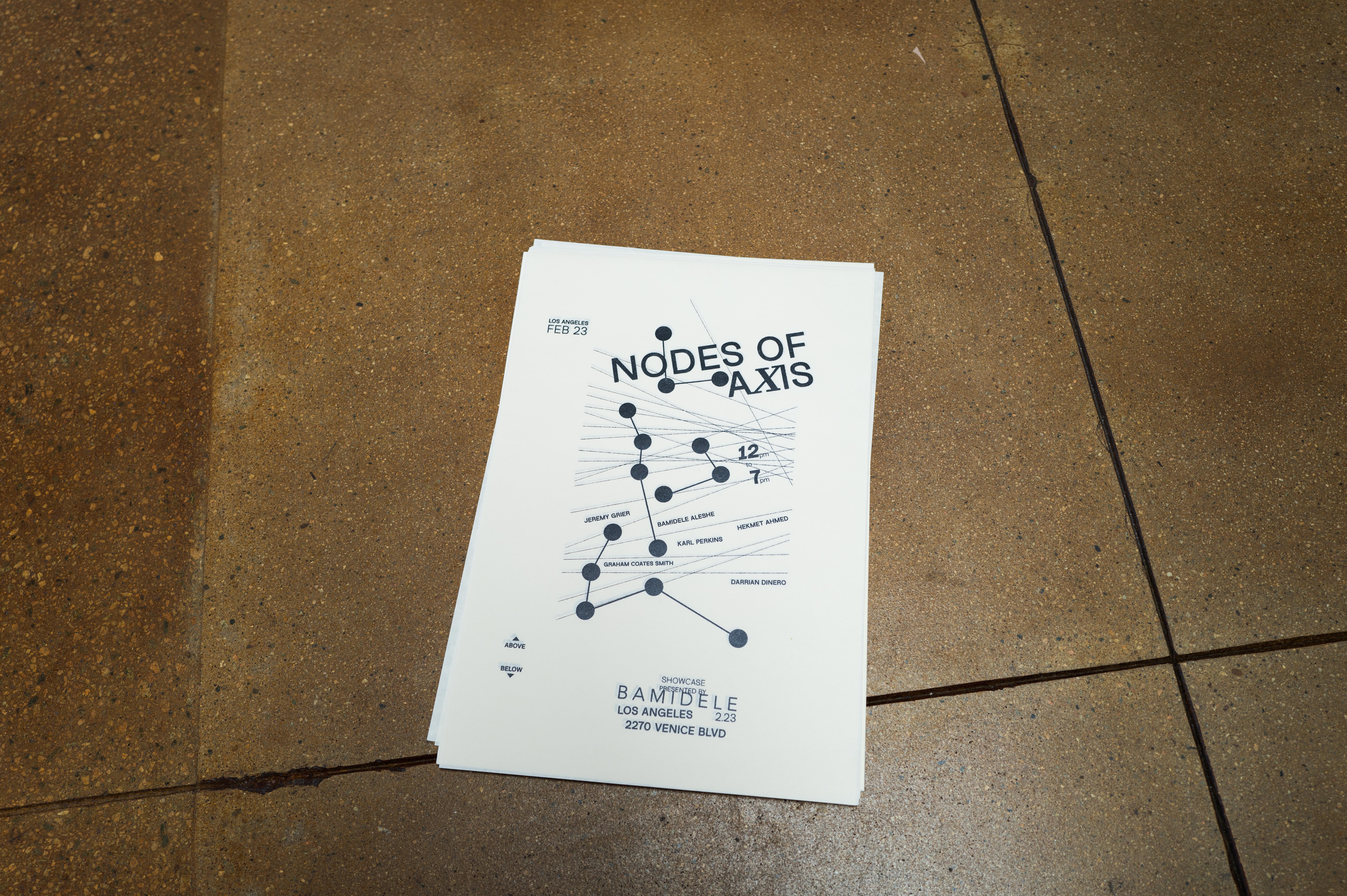 Nodes of Axis (NOA) was held on Sunday, February 23rd, 2025 and was the first Los Angeles showcase for darrian dinero in collaboration with BAMIDELE. Shown were a mix of personal and collaborative projects including unreleased styles, objects and images as well as works created with the support of the Natural History Museum of Los Angeles County.