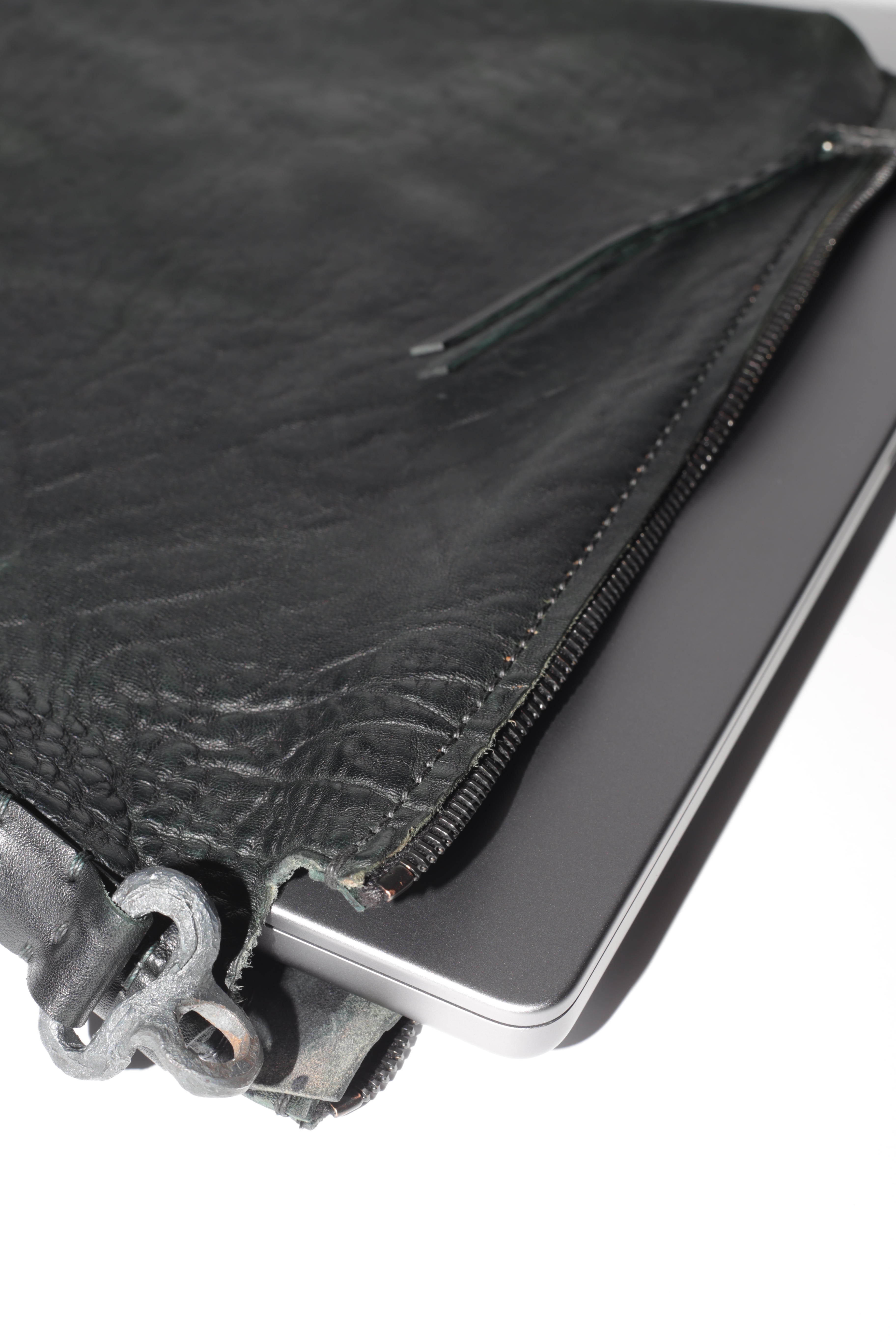 My objective: a protective leather computer receptacle with a detachable strap. In February we started the project, and due to my over excitement I over saturated the design, forgetting the importance of simplicity. The first bag was more aesthetic than functional. During our second go around, I refined the objective of the bag and focused on function, deleting various attachments that truly served no purpose. During this discovery, Sean was so understanding and helpful. In fact (300+ emails later) we learned more about one another outside of the project, despite a lofty 8 hr London time difference. This taught me the beauty of creative exploration, and the power of human connection; profoundly more multi-dimensional than bottomless consumerism. This was an infinite ever increasing value. I take no credit for the DNA of the object, in a way Sean’s unique design language spelled out what I had in mind but I am only indulging in the use of his alphabet.